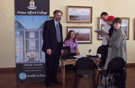 I was appointed as Prince Alfred College’s 9th Headmaster in late 1998, commencing duties on the first day of 2000. While at Prince Alfred College, one of Australia's most famous boys' schools (established in 1869), I oversaw a period of significant and rapid change. Many people would say this change was long overdue, dragging a somewhat conservative, inward-looking but well-meaning board and its excessively enmeshed finance staff out of the 20th into the 21st century. I was surprised by the poor state of many buildings (Library, Science Labs, Preparatory School) and educational shortcomings in the areas of limited languages program, anaemic support for the IB, no Gifted and Talented program, and sub-standard boarding facilities. One of my first initiatives was to commission the Milennium Hanging, a massive quilted hanging for the Hall that symbolised unity by assembling the handprint and signature of every student and staff member in the school on 1st January 2000. As soon as I arrived, I introduced a regular daily “Open Door” time for staff who were welcomed to come to my office unannounced to discuss any topic or question. I worked to build a strong relationship with PAOCA (Prince Alfred Old Collegians Association), travelling to attend almost every country and interstate reunion during my tenure as well as every one of the multiple reunions held in Adelaide. I oversaw three substantial building programs, upgraded classrooms (including introducing air conditioning), oversaw a complete re-fitting of the Hall with new seating, and played a pivotal role in developing the master plan which guided major campus redevelopment during the subsequent ten years. I diversified the staffing profile by appointing more young staff, including more women, and oversaw a much-needed growth in student enrolments of about 15% (Annual Reports show there were 909 students when I arrived in early 2000, 934 in early 2001, 952 in early 2002 and 963 in early 2003; by the end of 2003 there were 996 students). The strong growth of enrolments resulted from the appointment of an excellent new director in the Admissions Office who was supported by innovative marketing campaigns that controversially included television advertising and posters on bus shelters. I worked tirelessly to promote the College’s ethos as a Uniting Church school, including creating the new position of Youth Minister, through his weekly Newsletter articles, my public addresses and my weekly speeches at school assemblies. Always seeking to build new directions that authentically flowed from the College’s rich history and traditions, I actively ensured growth the School’s Archives facilities, developed a gallery called “Our Princes Men” in a high-traffic area of the school to celebrate the substantial achievements of alumni as role models to current students, initiated the Vintage Reds reunions to supplement the Old Old Boys annual assemblies, and commissioned historian and ex-student Ron Gibbs to update, expand and re-publish his 1984 “History of Prince Alfred College”. I promoted the school internationally, establishing a sister school relationship with Datong High School in Shanghai (China), personally recruiting several tens of students from China, and (less successfully) promoting the College at recruitment fairs in Russia and Eastern Europe. Throughout my time at Prince Alfred College, I chose to stay in touch with my students and with my teachers’ daily needs by teaching full regular classes of Geography. I developed and implemented a new Strategic Plan following extensive consultation, I developed a highly effective incentive awards program that stimulated student effort and achievement in the classroom, I established the Einstein Program to meet the needs of Gifted and Talented students, guided the formation of the Noel Baker Centre for School Mathematics, I saw every student individually in my office on their birthday, introduced leadership training camps for prefects, co-ordinated a significant and overdue updating of the school uniform, and I developed and introduced the nationally-acclaimed, ground-breaking Eudemology program. This last innovation was one of several that led to the school being named one of “Australia’s Top 10 Schools” by 'The Australian' newspaper during three years of the five years that I was there, something that has not been repeated by any school before or since. Upon leaving Prince Alfred College to take up a new headship in Hong Kong, I donated a new trophy, the Wesley Cup, as a peak award for the restructured annual house competition, becoming the College’s first Headmaster since 1886 to leave in order to take up another position (as opposed to retiring).